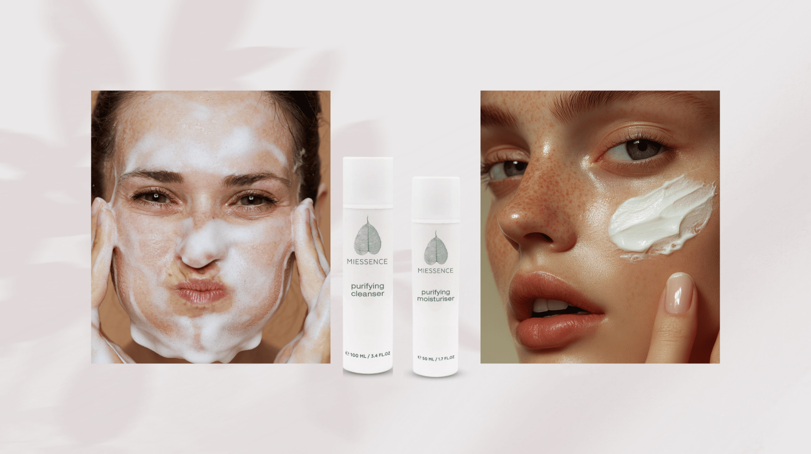 Produkt Miessence: Miessence Purifying Cleanser a Miessence Purifying Moisturiser jsou navrženy pro mastný a problematický typ pleti, využívají zklidňující extrakty bez zatěžujících látek.
